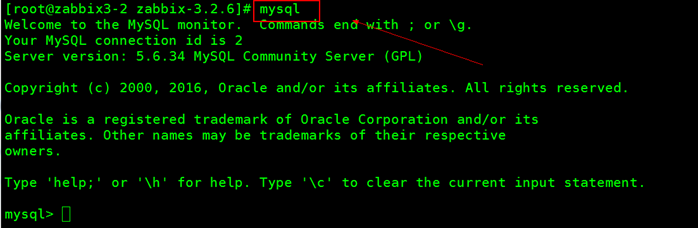 [root@zabbix3-2 zabbix-3.2.6]# mysql #备注;因为我没有设置密码直接登录