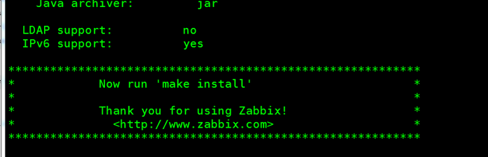 [root@zabbix3-2 zabbix-3.2.6]#./configure --prefix=/application/zabbix-3.2.6 --enable-server --enable-agent --enable-java --enable-ipv6 --with-mysql=/application/mysql/bin/mysql_config --with-net-snmp --with-libcurl=/usr/bin/curl-config --with-libxm12 --with-openipmi --with-unixodbc --with-openssl