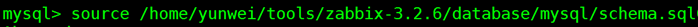 mysql; source /home/yunwei/tools/zabbix-3.2.6/database/mysql/schema.sql mysql; source /home/yunwei/tools/zabbix-3.2.6/database/mysql/images.sql mysql; source /home/yunwei/tools/zabbix-3.2.6/database/mysql/data.sql