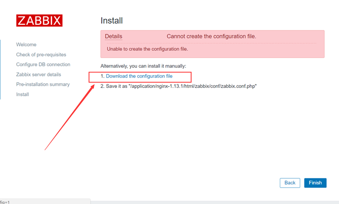 解决方法:手动下载后上传到 nginx 目录下 html/zabbix/conf 下