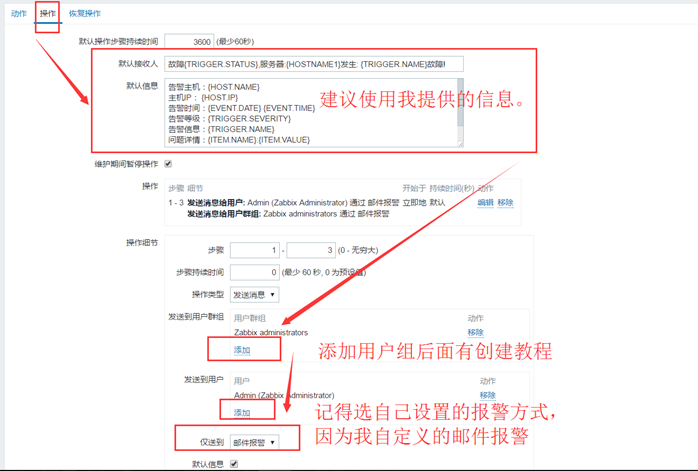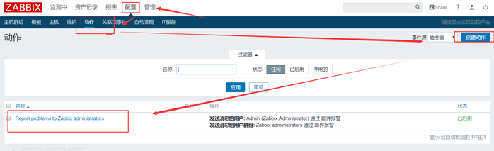 可创建动作,我直接用zabbix