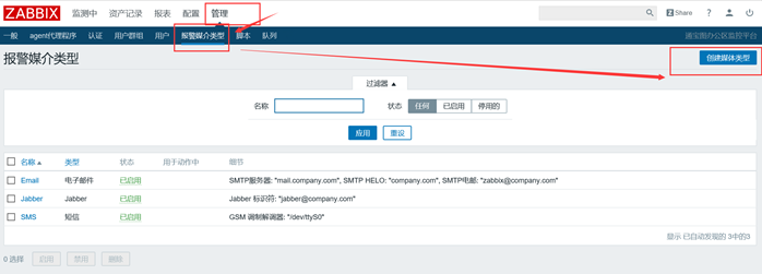 选择管理-报警媒介类型-创建媒体类型