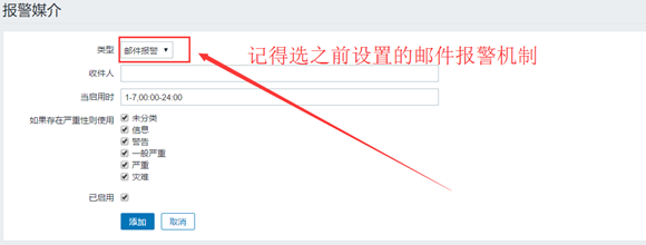 在类型一定要选择自己报警名称。