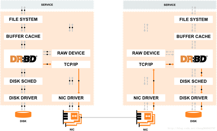 1.SERVICE 将数据写入==> FILE SYSTEM ==> BUFFER CACHE ==> DRBD